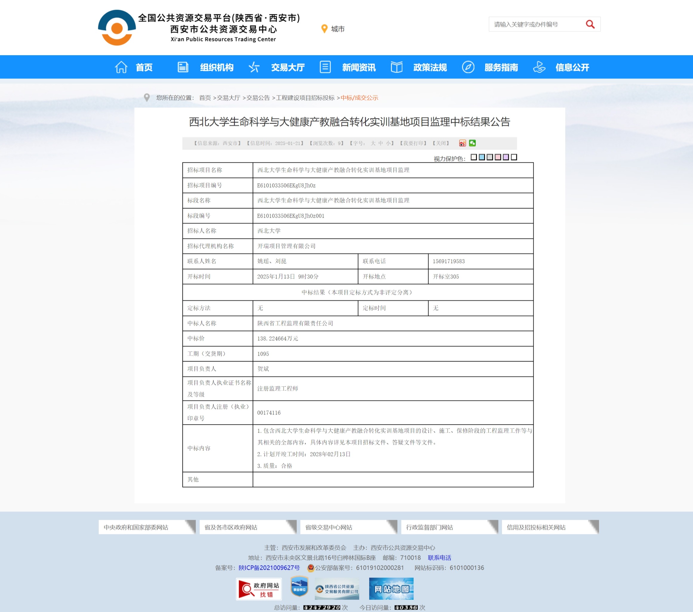 乐鱼网页版页面登录生命科学与大健康产教融合转化实训基地项目监理中标结果公告