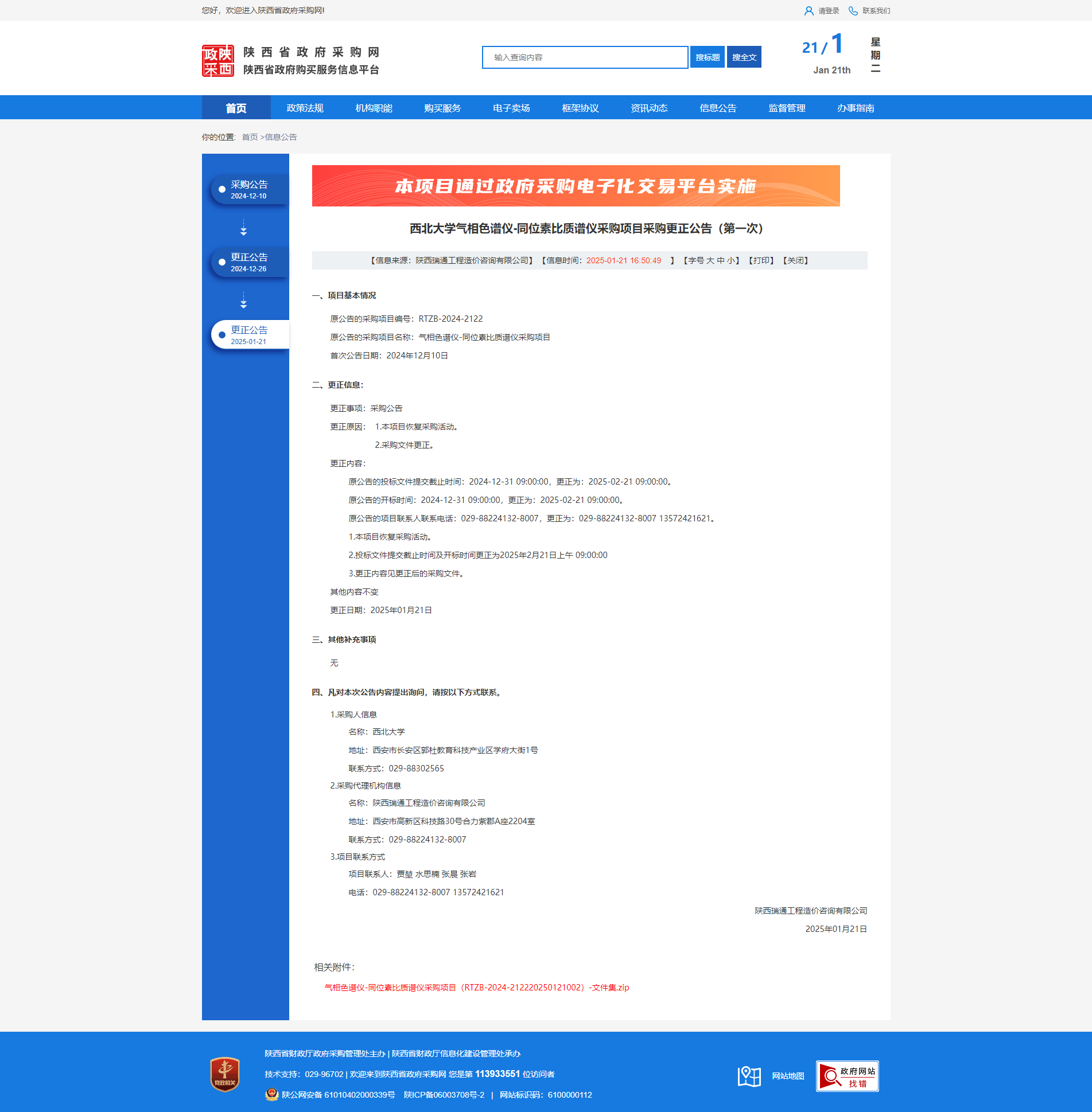 乐鱼网页版页面登录气相色谱仪-同位素比质谱仪采购项目采购更正公告(第一次)