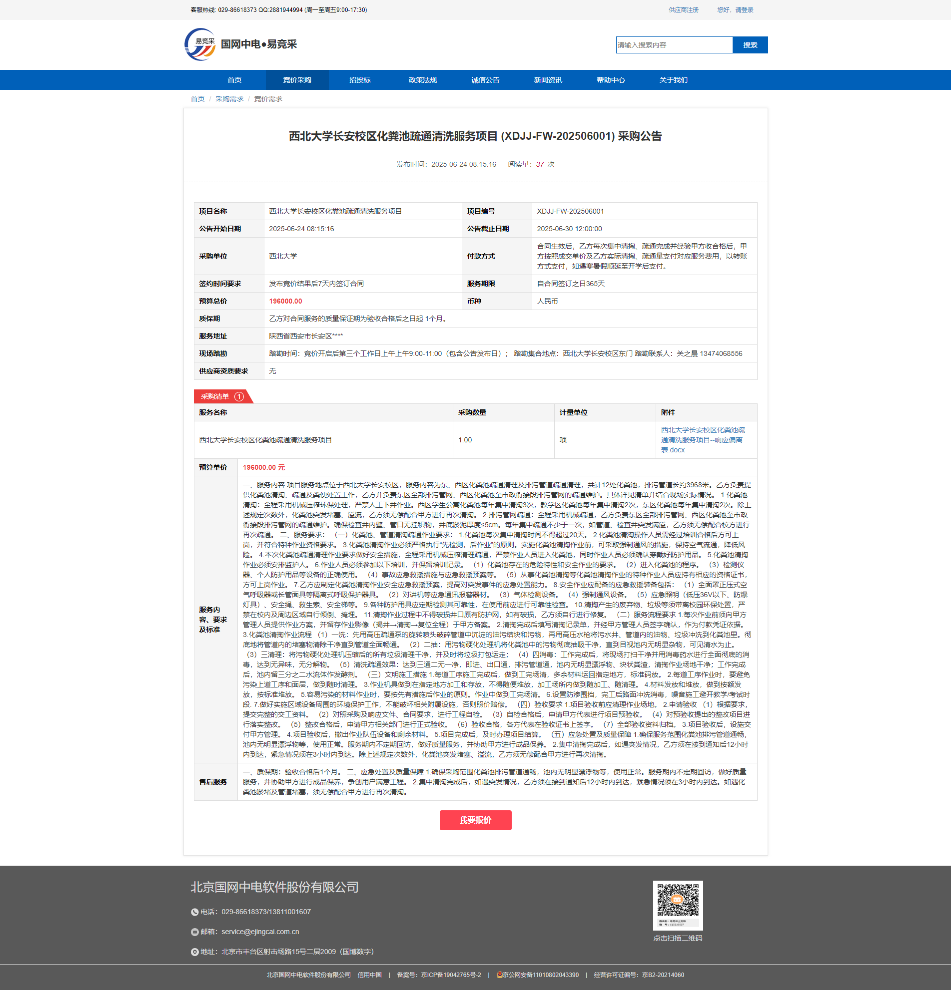 乐鱼网页版页面登录长安校区化粪池疏通清洗服务项目 (XDJJ-FW-202506001) 采购公告