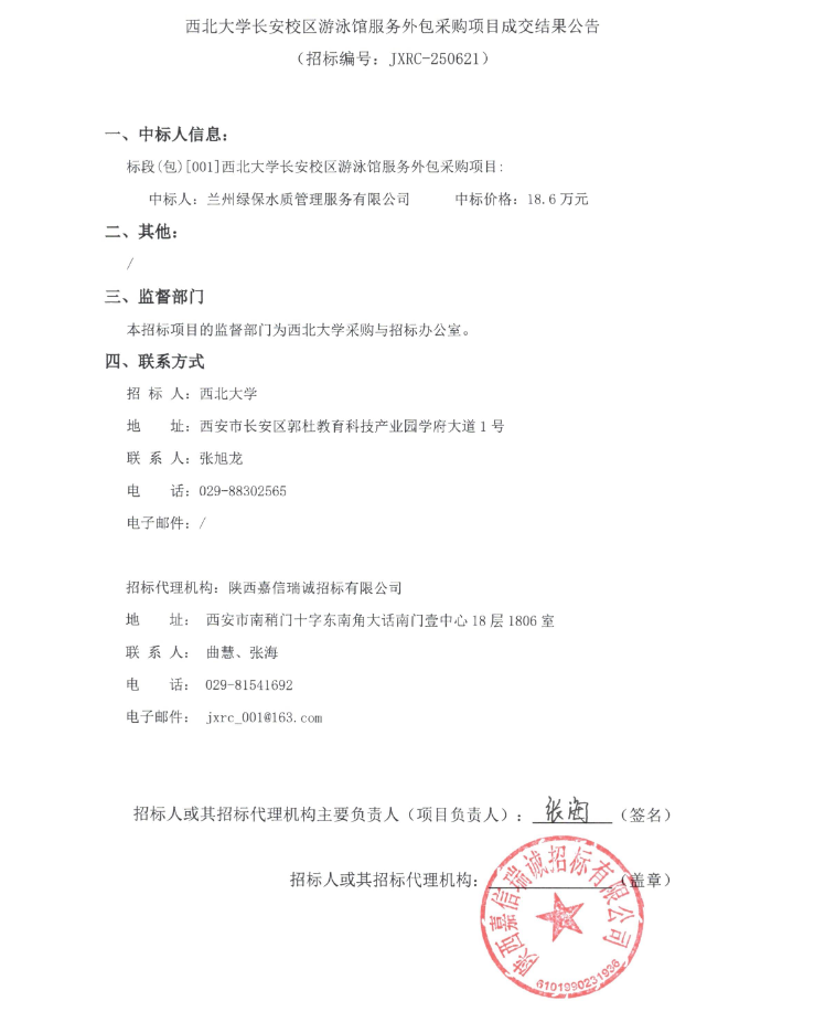 乐鱼网页版页面登录长安校区游泳馆服务外包采购项目成交结果公告