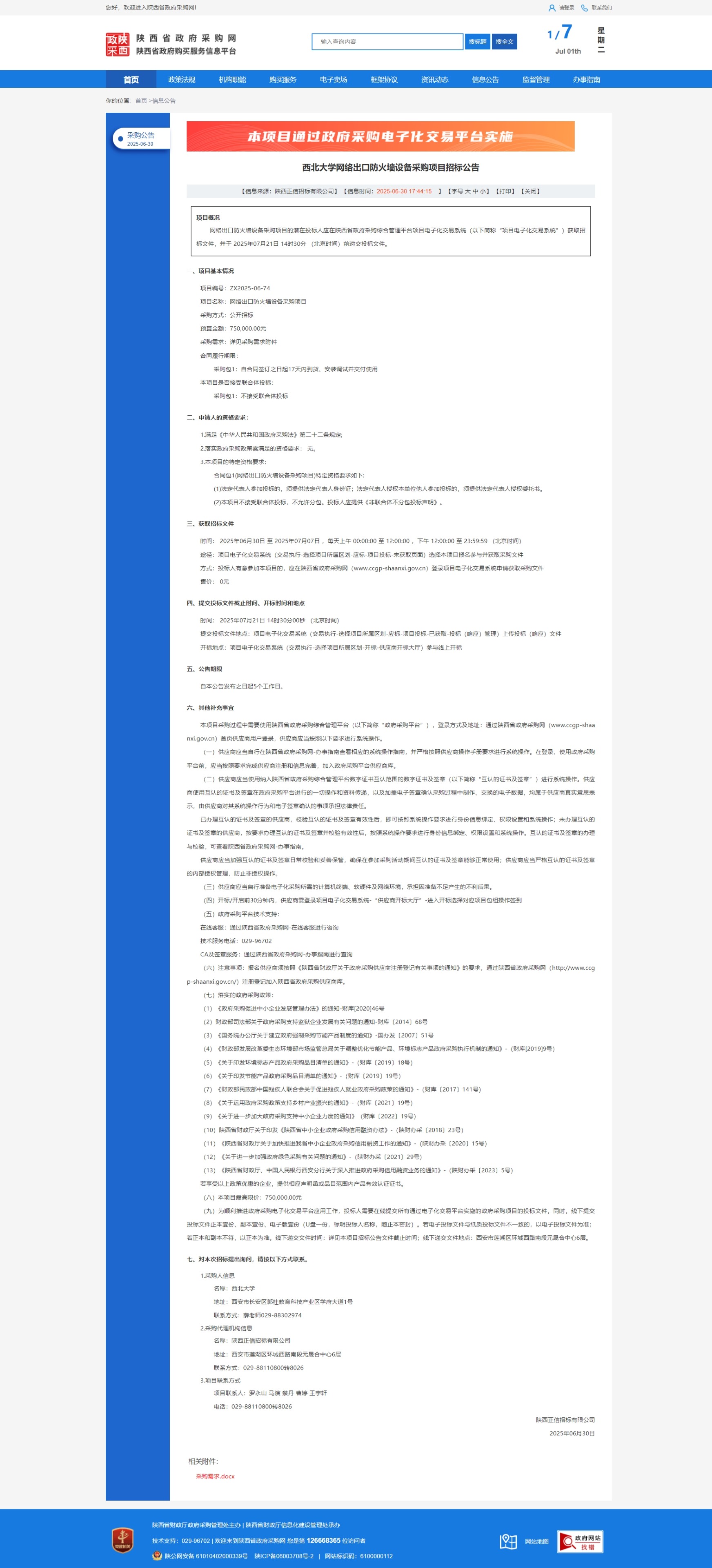 乐鱼网页版页面登录网络出口防火墙设备采购项目招标公告 作者: 编辑:采购与招标办公室 时间:2025-07-01 原公告链接:https://www.ccgp-shaanxi.gov.cn/freecms/site/shaanxi/ggxx/info/2025/8a69c2ef97af7dd30197c01b7ca54817.html?noticeType=001011¬iceId=c6225ff7-5598-11f0-8063-08c0eb20c666