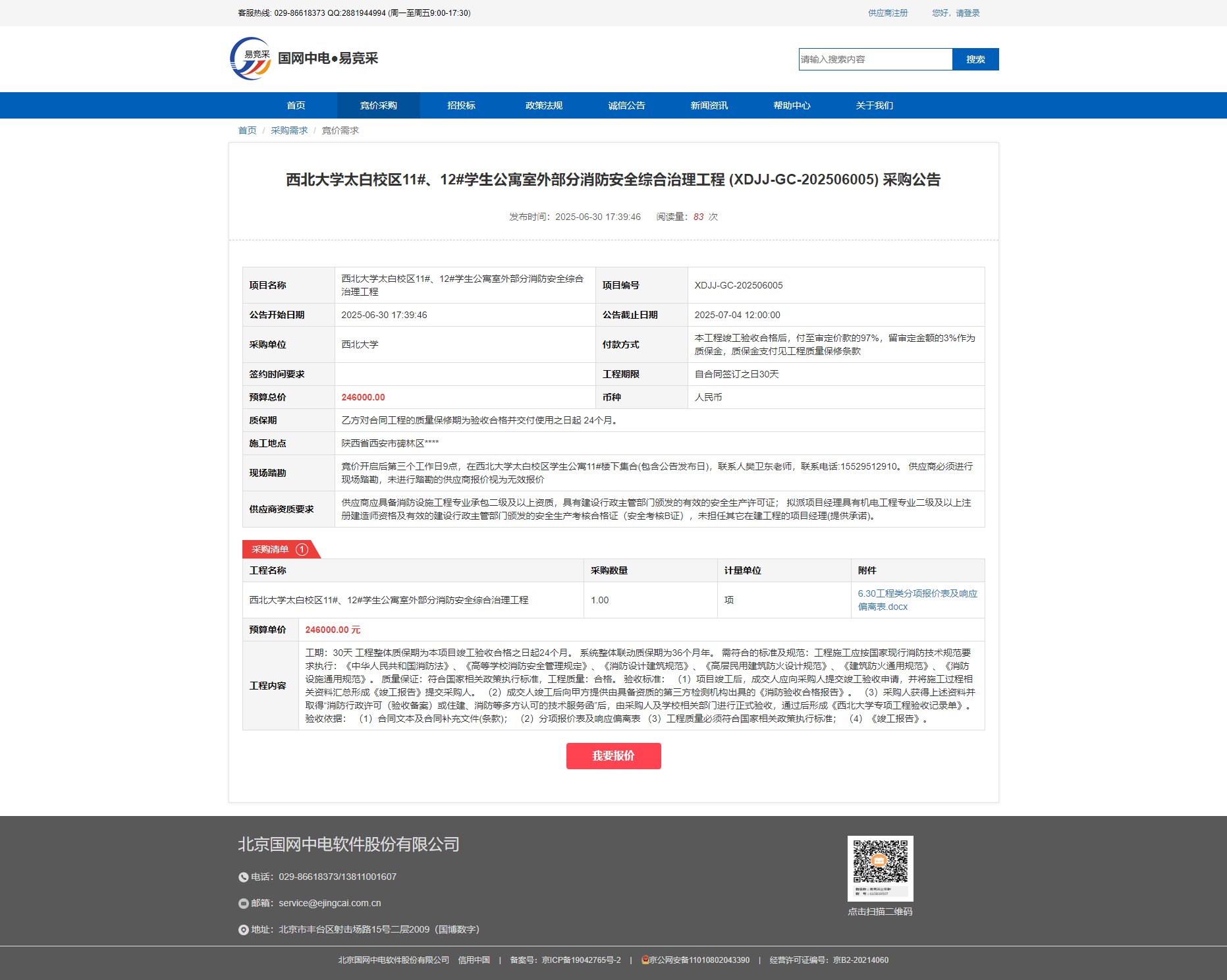 乐鱼网页版页面登录太白校区11#、12#学生公寓室外部分消防安全综合治理工程 (XDJJ-GC-202506005) 采购公告