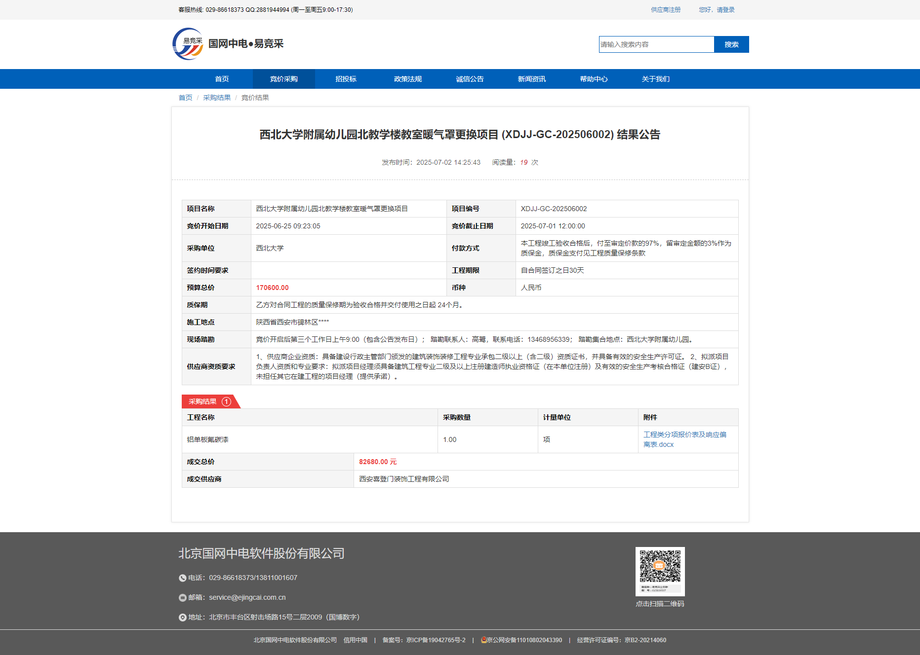 乐鱼网页版页面登录附属幼儿园北教学楼教室暖气罩更换项目 (XDJJ-GC-202506002) 结果公告