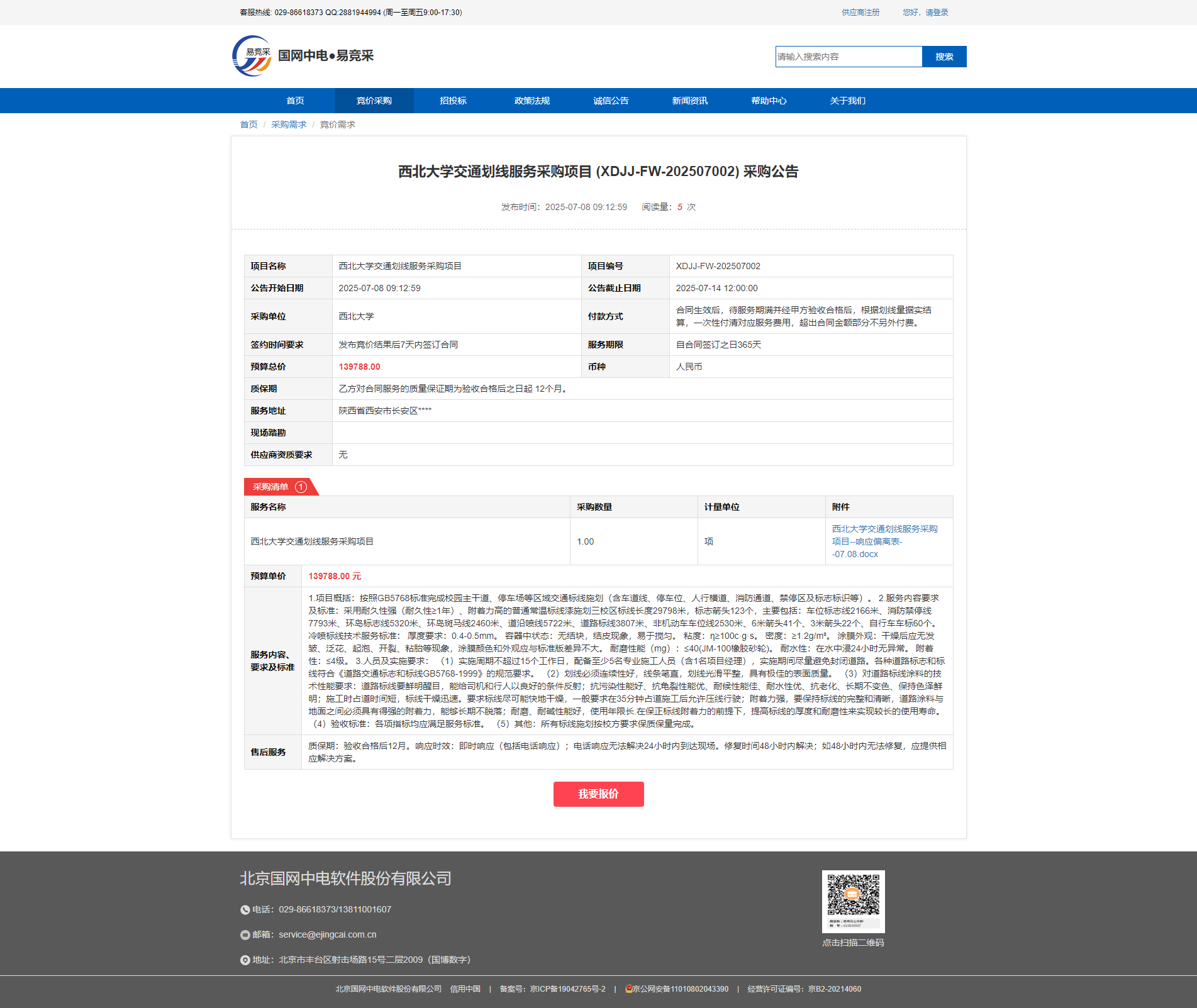 乐鱼网页版页面登录交通划线服务采购项目 (XDJJ-FW-202507002) 采购公告
