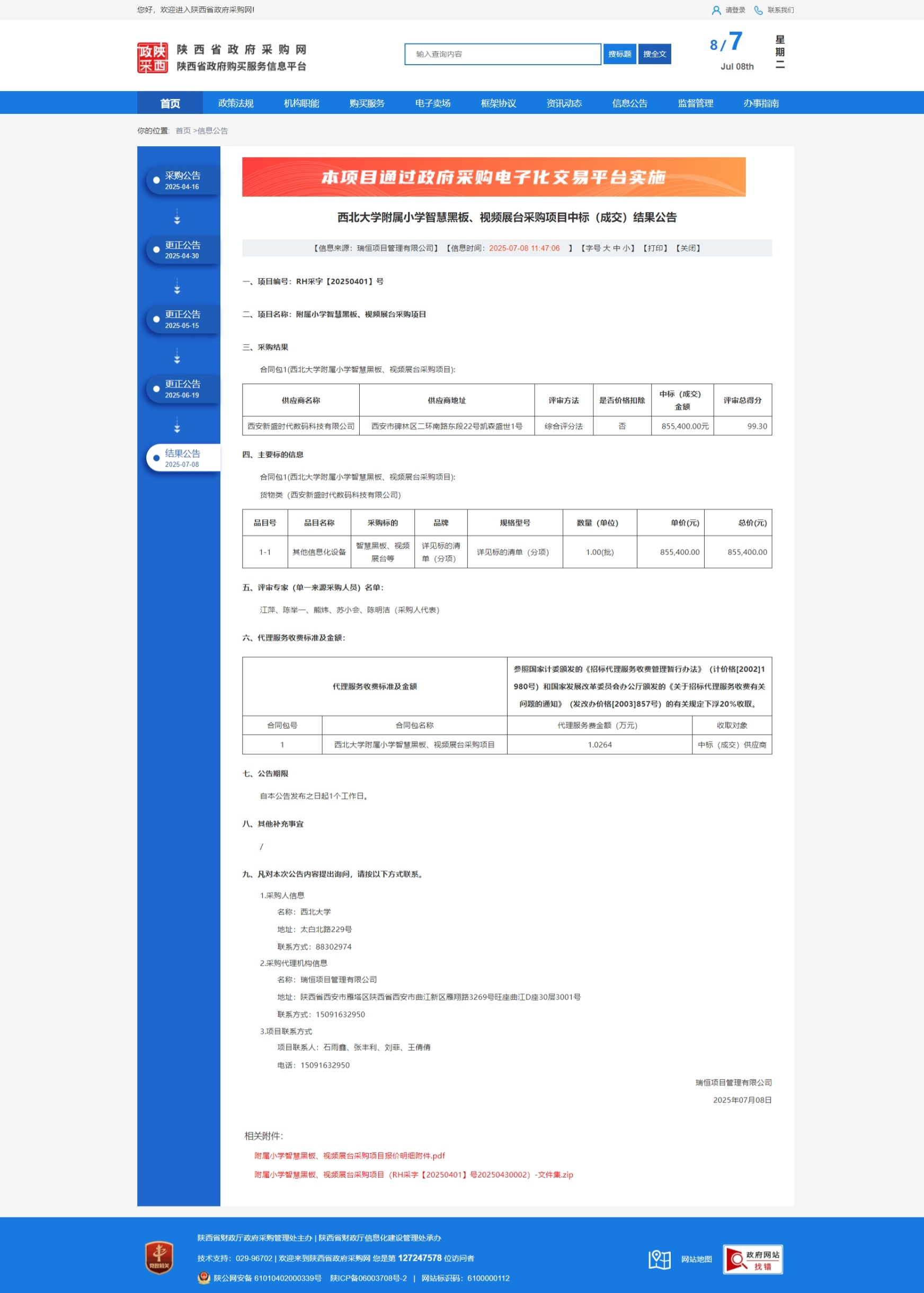 乐鱼网页版页面登录附属小学智慧黑板、视频展台采购项目中标(成交)结果公告 作者: 编辑:采购与招标办公室 时间:2025-07-08 原公告链接:https://www.ccgp-shaanxi.gov.cn/freecms/site/shaanxi/ggxx/info/2025/8a69c0bc97db81390197e819c3dd4789.html?noticeType=001021¬iceId=37da8661-5bb0-11f0-8063-08c0eb20c666