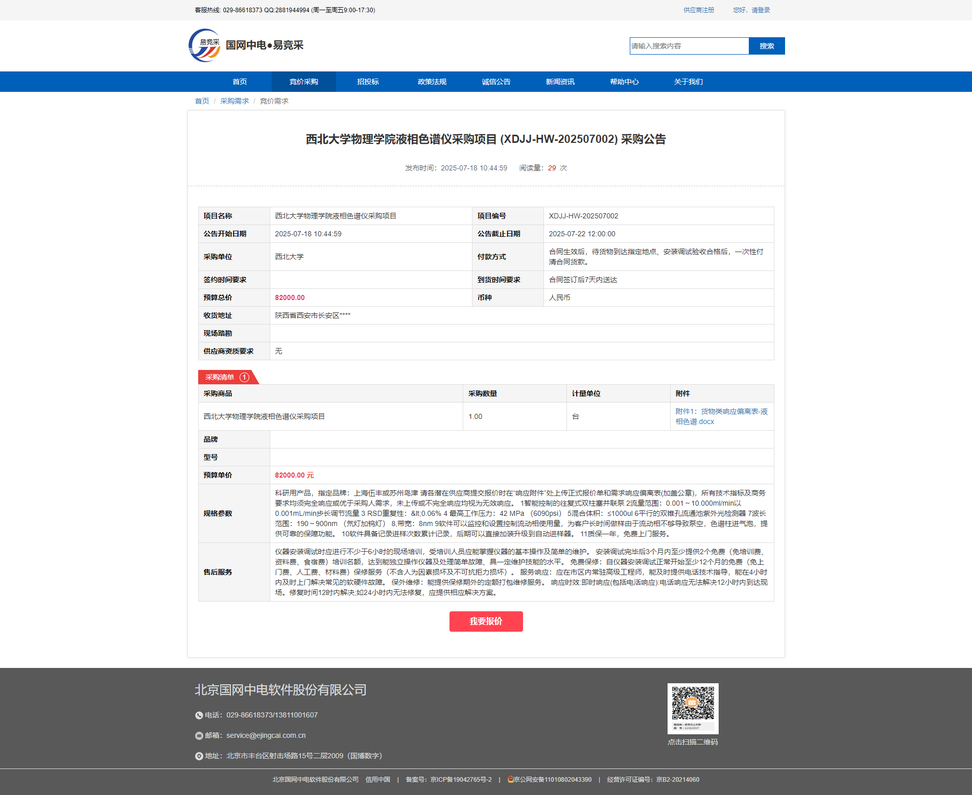 乐鱼网页版页面登录物理学院液相色谱仪采购项目 (XDJJ-HW-202507002) 采购公告