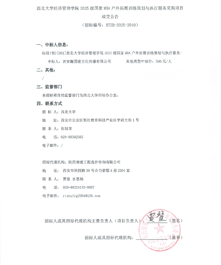 乐鱼网页版页面登录经济管理学院2025级国家MBA户外拓展训练策划与执行服务采购项目成交公告
