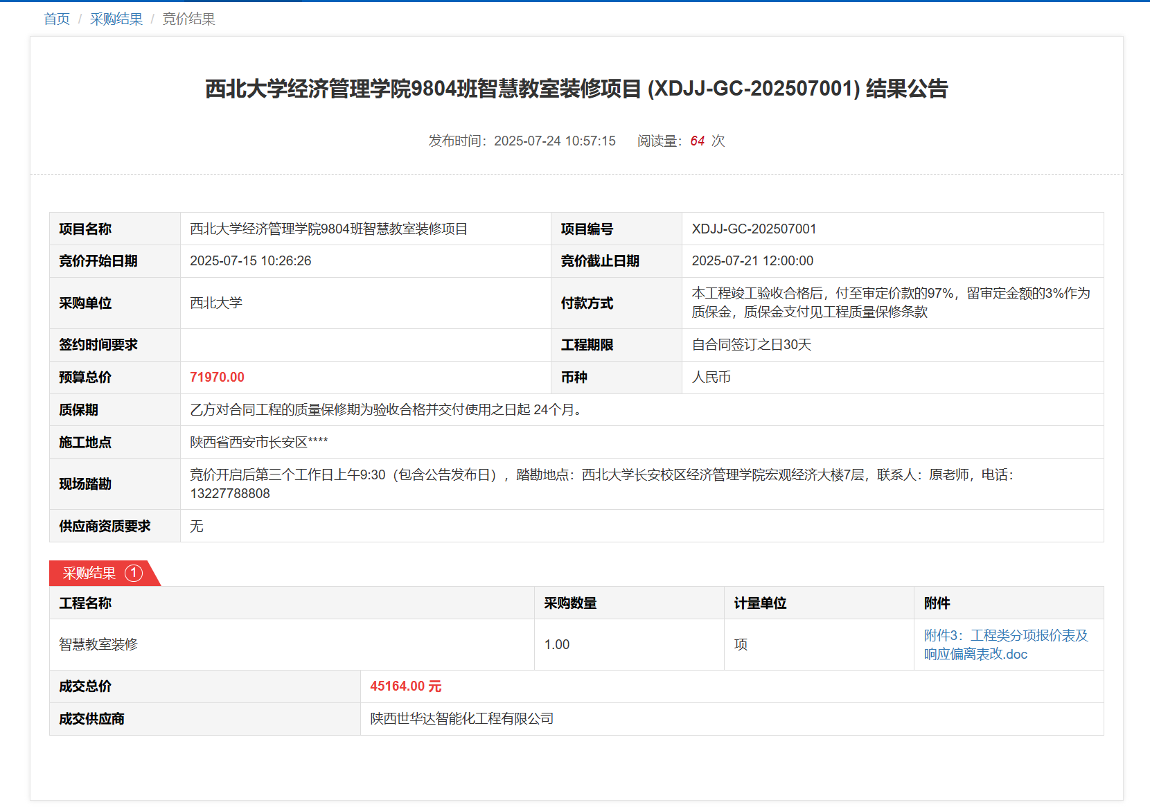 乐鱼网页版页面登录经济管理学院9804班智慧教室装修项目(XDJJ-GC-202507001)竞价结果公告 作者: 编辑: 时间:2025-07-24 原公告链接:https://www.ejingcai.com.cn/site/bidding/detail/19710
