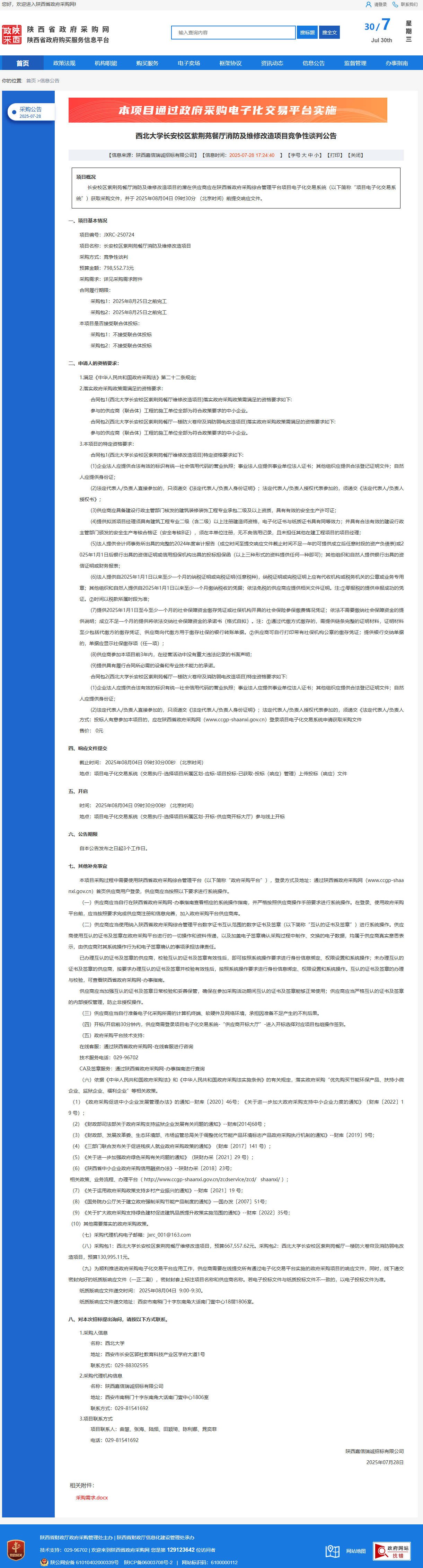 乐鱼网页版页面登录长安校区紫荆苑餐厅消防及维修改造项目竞争性谈判公告