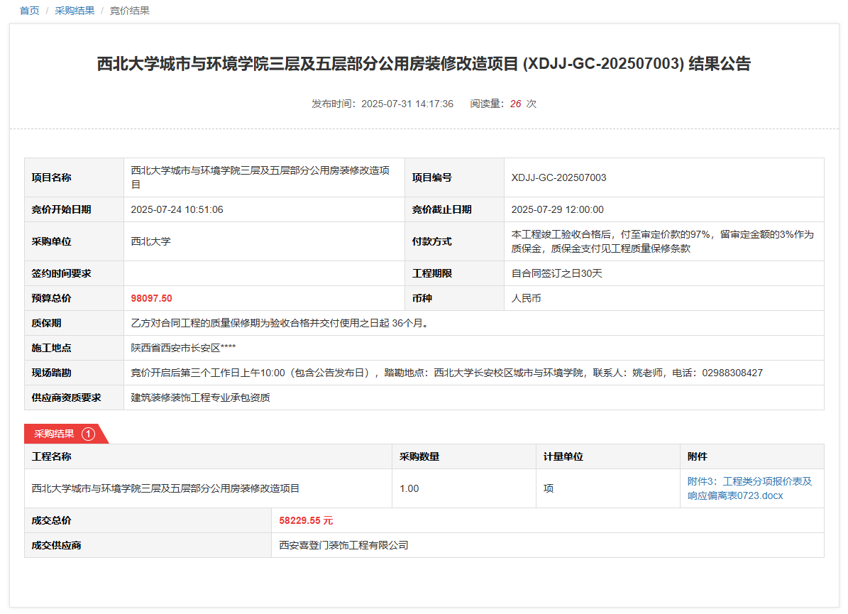 乐鱼网页版页面登录经济管理学院mba9804班智慧教室设备采购项目 (XDJJ-HW-202507005) 竞价结果公告