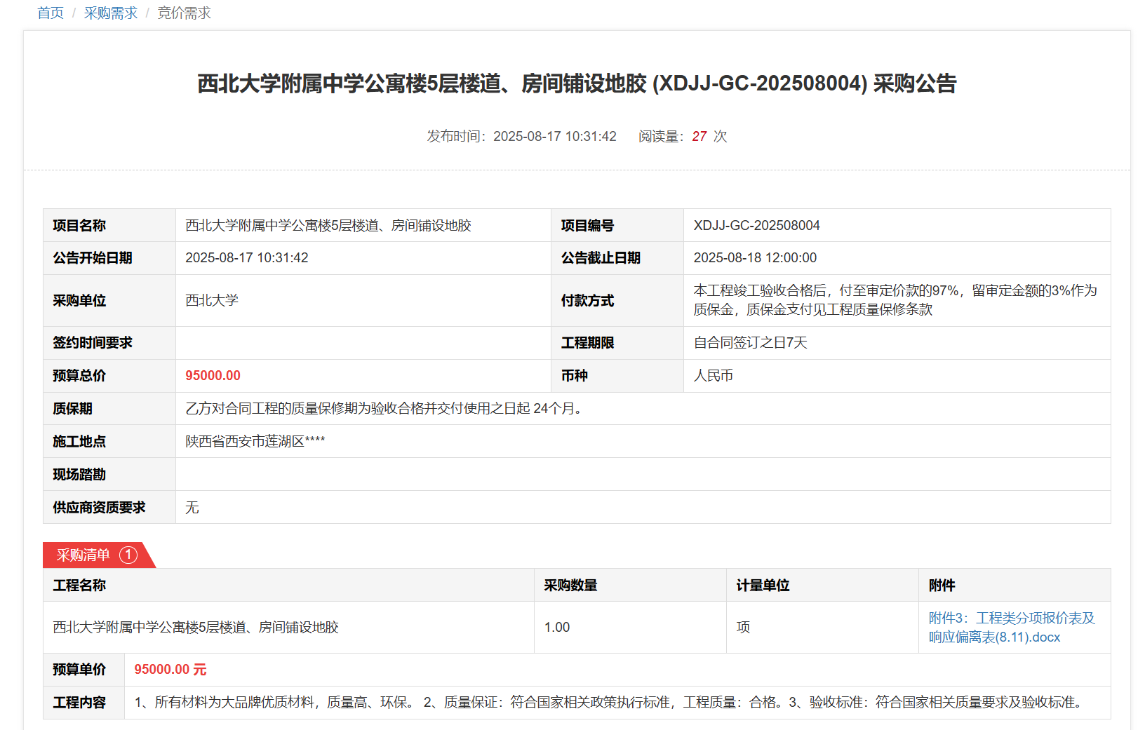 乐鱼网页版页面登录太白校区科研楼公共区域、教学七号楼室内照明设施更换(XDJJ-GC-202508001)竞价结果公告