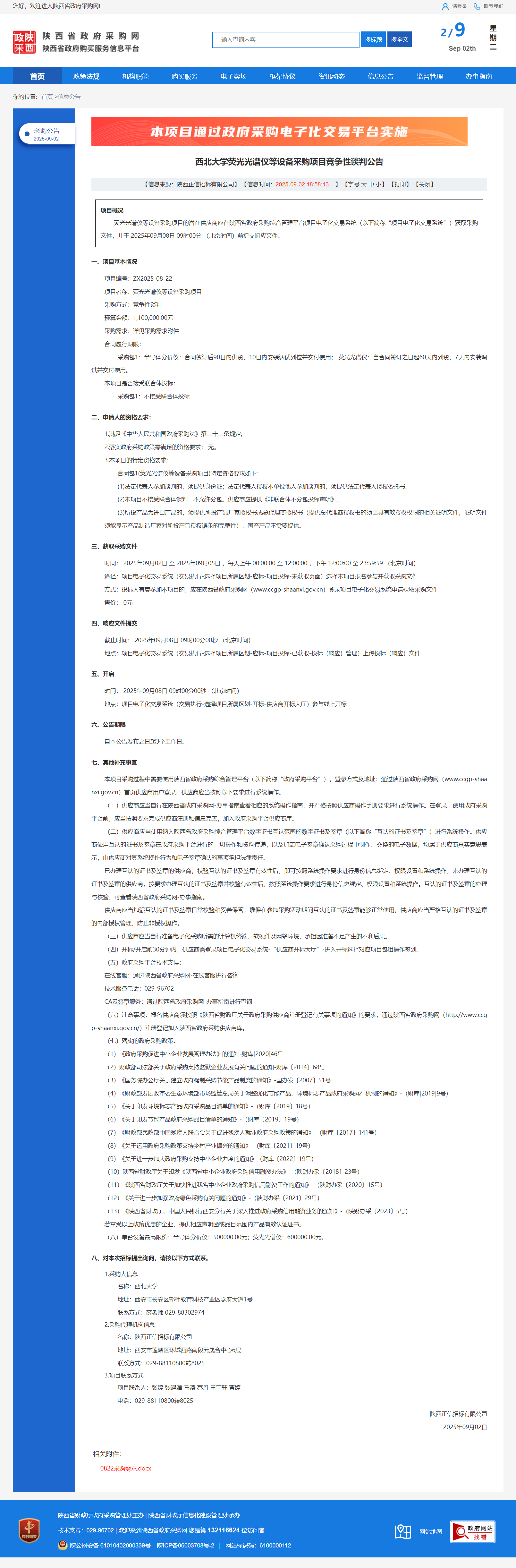 乐鱼网页版页面登录荧光光谱仪等设备采购项目竞争性谈判公告
