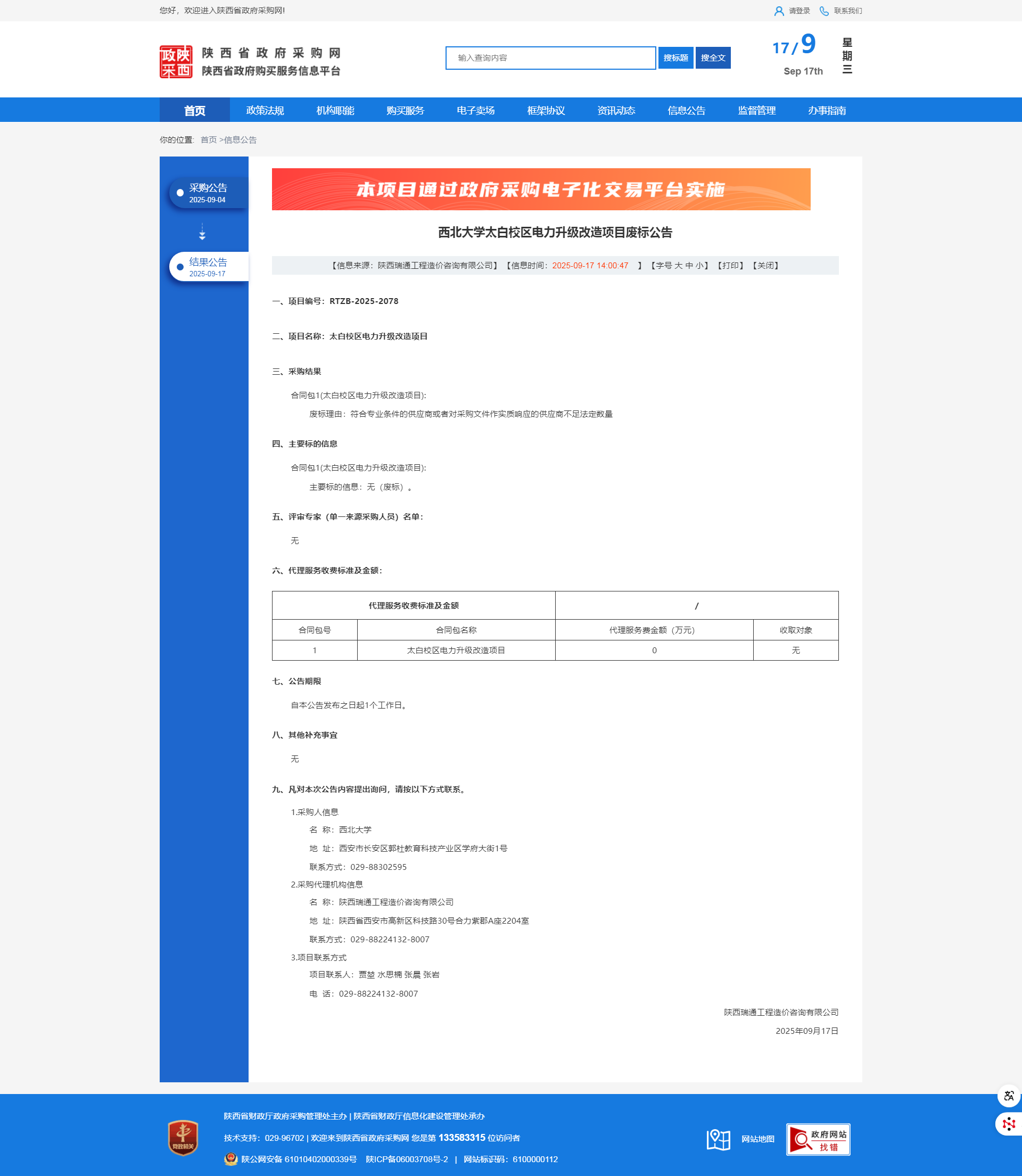 乐鱼网页版页面登录太白校区电力升级改造项目废标公告