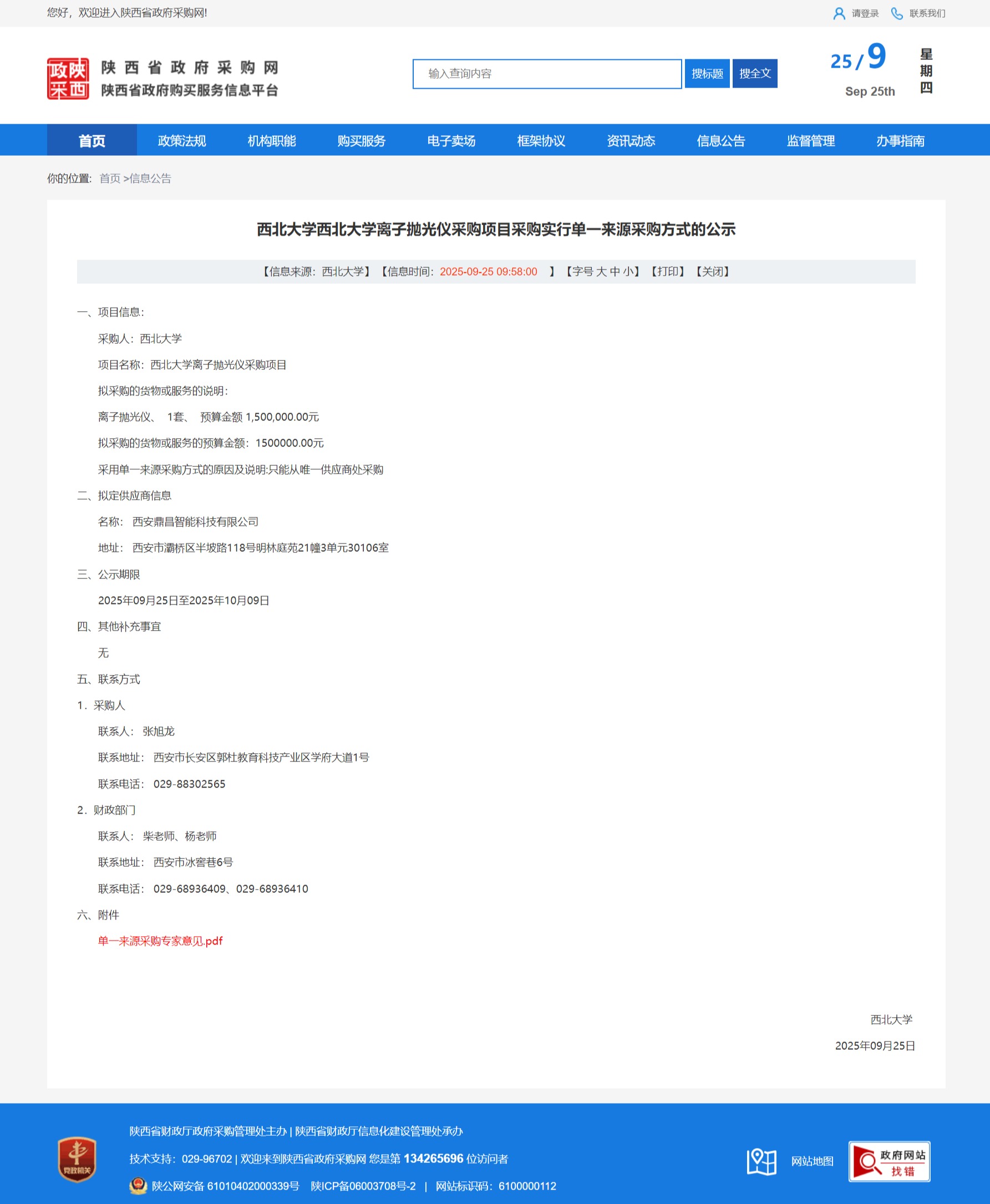 乐鱼网页版页面登录离子抛光仪采购项目实行单一来源采购方式的公示