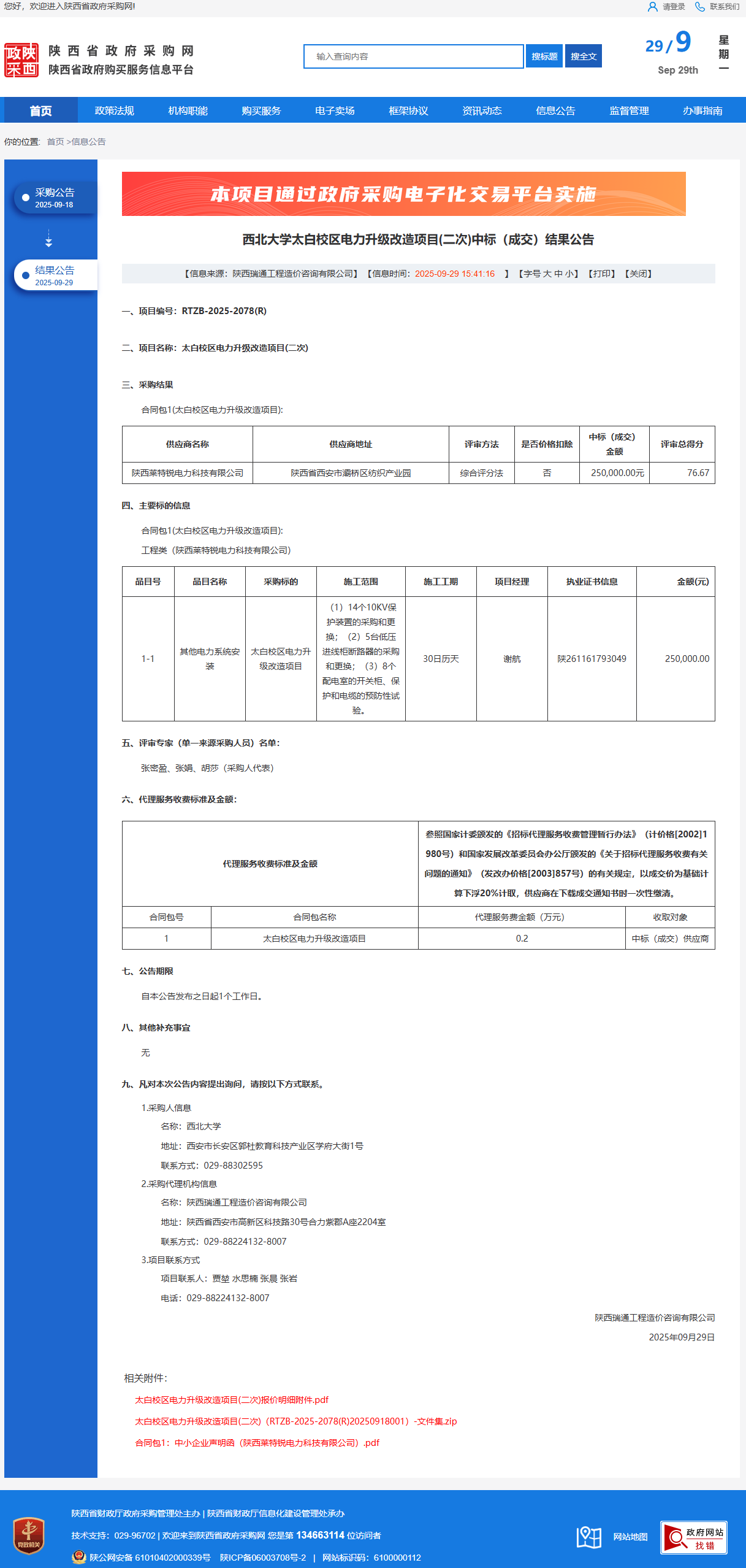 乐鱼网页版页面登录太白校区电力升级改造项目(二次)中标(成交)结果公告