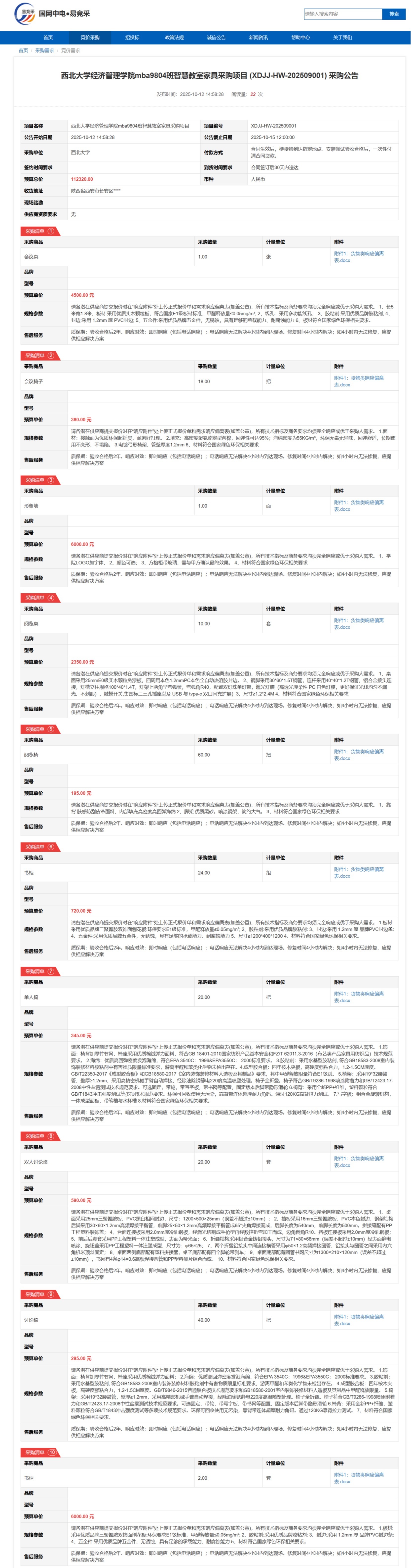 乐鱼网页版页面登录经济管理学院mba9804班智慧教室家具采购项目(XDJJ-HW-202509001)竞价采购公告