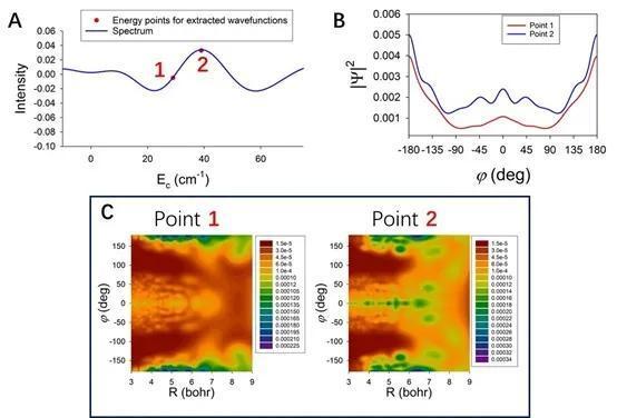 针对这一非常新颖和特殊的实验现象,理论方面 谢长建 结合准经典轨迹和量子动力学方法展开了研究。从经典轨线中分析“漫游”反应动力学特征,并通过量子波包动力学计算证实了反应的量子特性,阐释了实验上所观测到的“漫游”机理增强是由轨道共振引起量子效应现象。