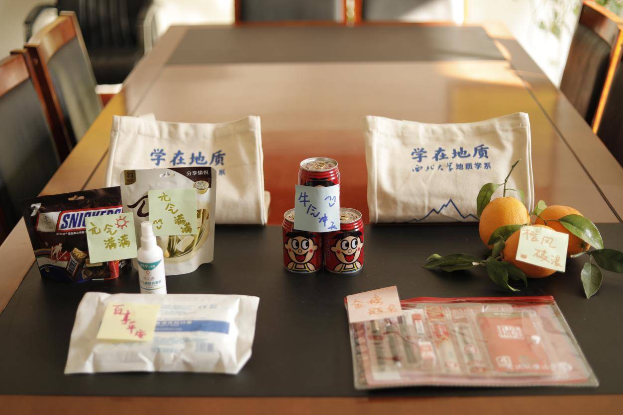 “学在地质”考研暖心大礼包包括“牛”气冲天——牛奶一罐,元气满满——巧克力一份,“橙”风破浪——橙子一份,百事平安——口罩、手消一份,以及金榜题名——考试文具套装一份等,每个“大礼包”都装有一张学院领导、教师亲手写给学生的专属祝福明信片。用特别的方式表达全系师生对考研学子们的关怀,愿学子们在追梦途中,不辜负每一分付出,都能学有所成,得偿所愿。