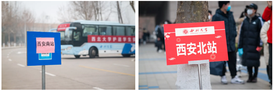 为统筹安排学生的返乡,最大限度避免人员的聚集,两校区开设西门和北门各两个点位,分时段分批次供西安市内私家车接送学生返家。