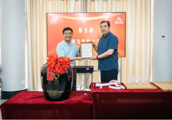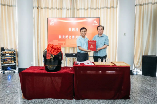 西安市糖酒集团有限公司董事长张军和乐鱼网页版页面登录党委书记王亚杰共同为乐鱼网页版页面登录120周年校庆酒封坛。中国白酒大师白希智先生向乐鱼网页版页面登录赠送“匠心筑梦六十载,与酒结缘忆春秋”从业60周年纪念册。