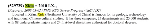在120周年校庆即将到来之际,乐鱼网页版页面登录收到一份来自宇宙的生日礼物。9月13日上午,国际天文学联合会发布公告,经小天体命名工作组批准,国际永久编号为529729号的小行星以乐鱼网页版页面登录命名,称为“Xida”星。