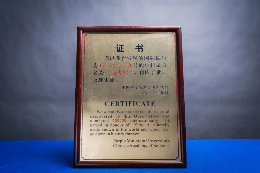 仪式上,宣读并赠送了“Xida”星国际命名公报、“Xida”星命名证书,对“Xida”星的发现过程及相关参数进行了简要介绍。据介绍,“Xida”星编号为529729号小行星,“Xida”星是2008年3月2日,由紫金山天文台盱眙天文观测站近地天体望远镜发现。其轨道偏心率为0.049,轨道倾角为6.595度,轨道半长径为3.044天文单位,以每日147万公里在轨道上高速前进,其与地球的最远距离达6.27亿公里,最近时只有2.83亿公里。
