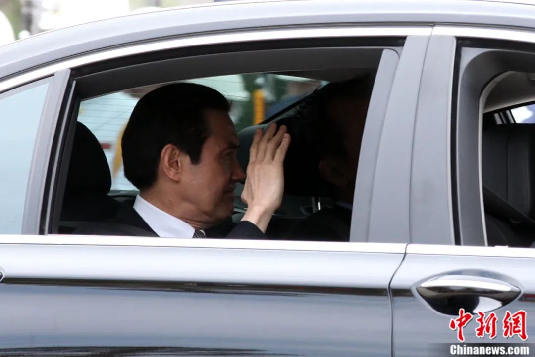 2013年4月3日,台湾当局领导人马英九在台北遥祭黄帝陵。图为马英九驱车离开时,向人群挥手致意。