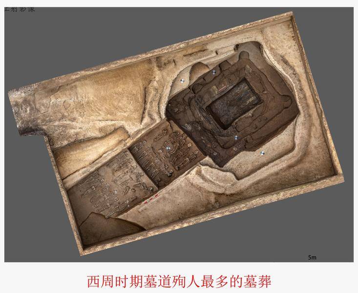 M90大墓殉人43具,出土了刻有甲骨文的卜骨