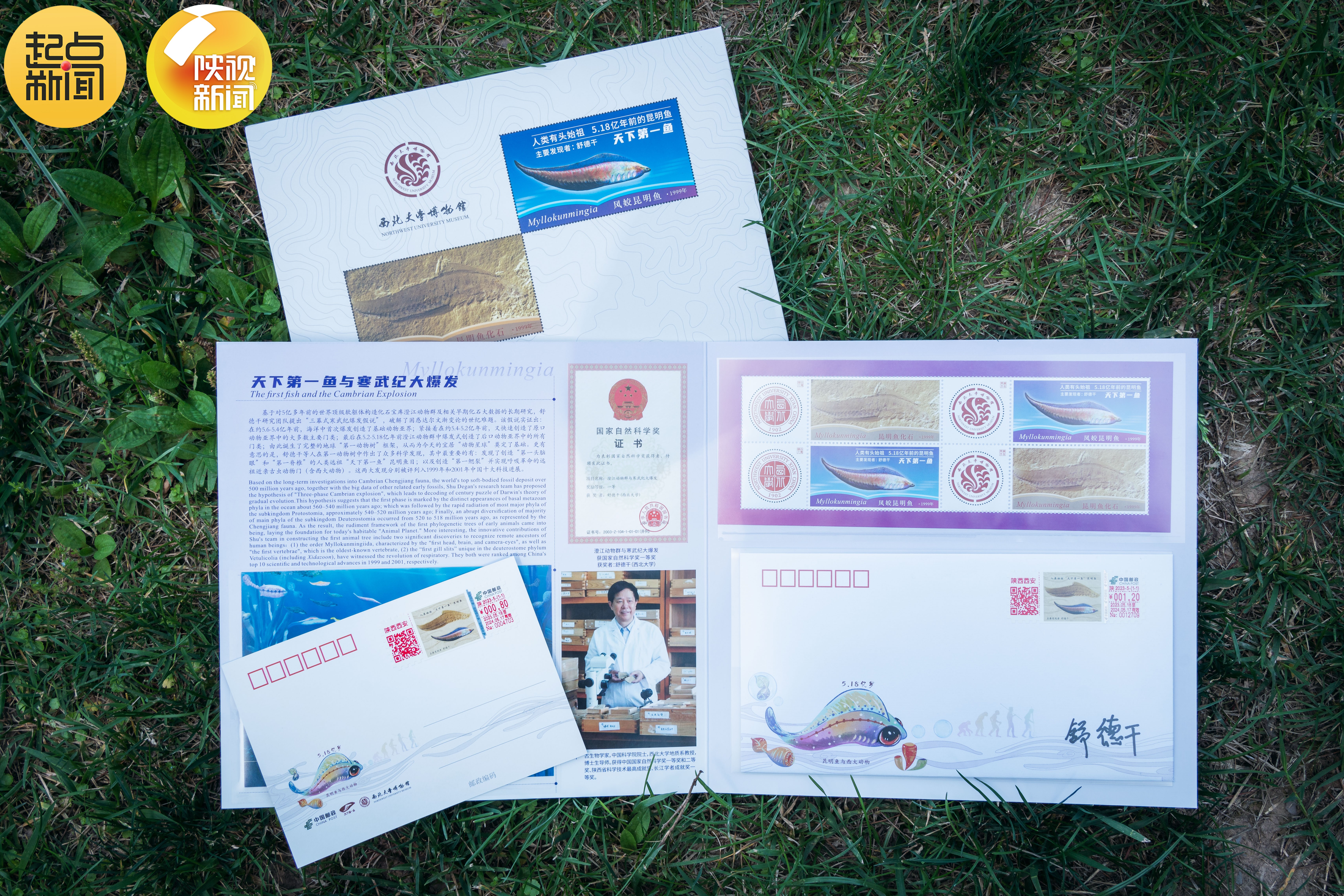 此次启用的《昆明鱼化石》邮资机宣传戳,是以乐鱼网页版页面登录舒德干院士团队发现的凤姣昆明鱼化石为原型设计制作,包含邮资封、明信片和邮折。