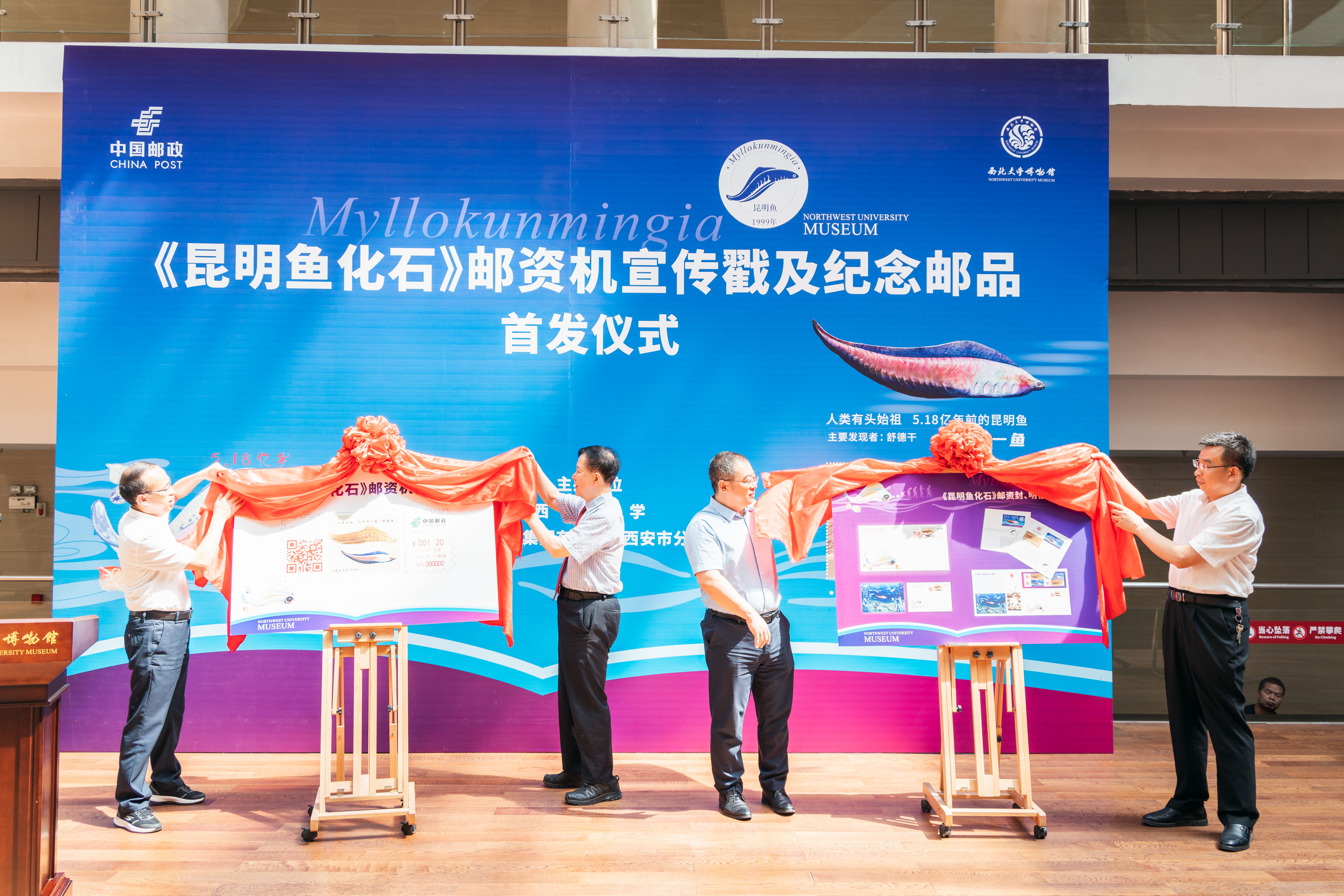 5月18日上午,《昆明鱼化石》邮资机宣传戳及系列纪念邮品在乐鱼网页版页面登录博物馆首发。