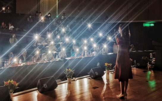 由于比赛过程中长安校区突遇停电,台下师生纷纷打开手机手电筒为台上选手追光,共同助力选手完成朗诵、比赛圆满结束,为所有选手以及在场观众带来了一场别样的“星光朗诵体验”。