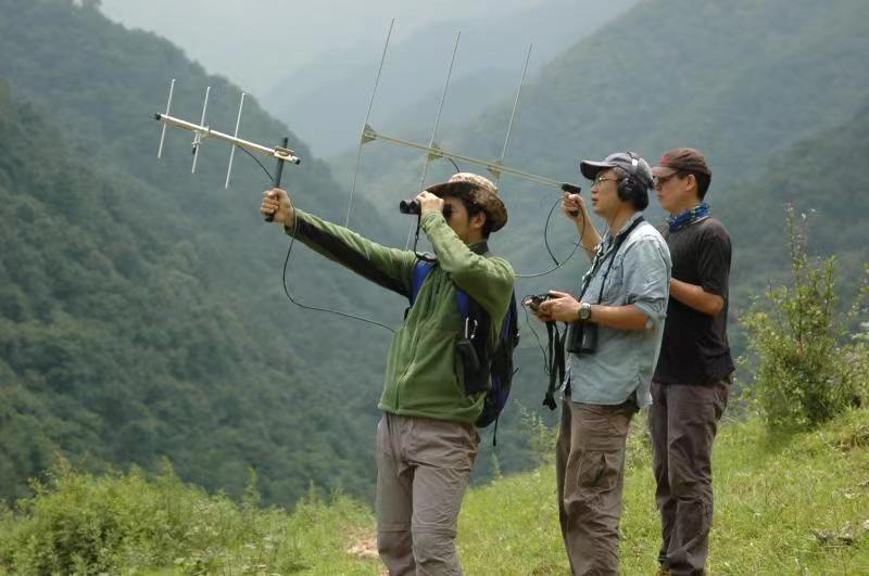 Qi Xiaoguang (in the middle) and his team are monitoring the life trajectory of golden monkeys in the wild. [Photo provided to chinadaily.com.cn]