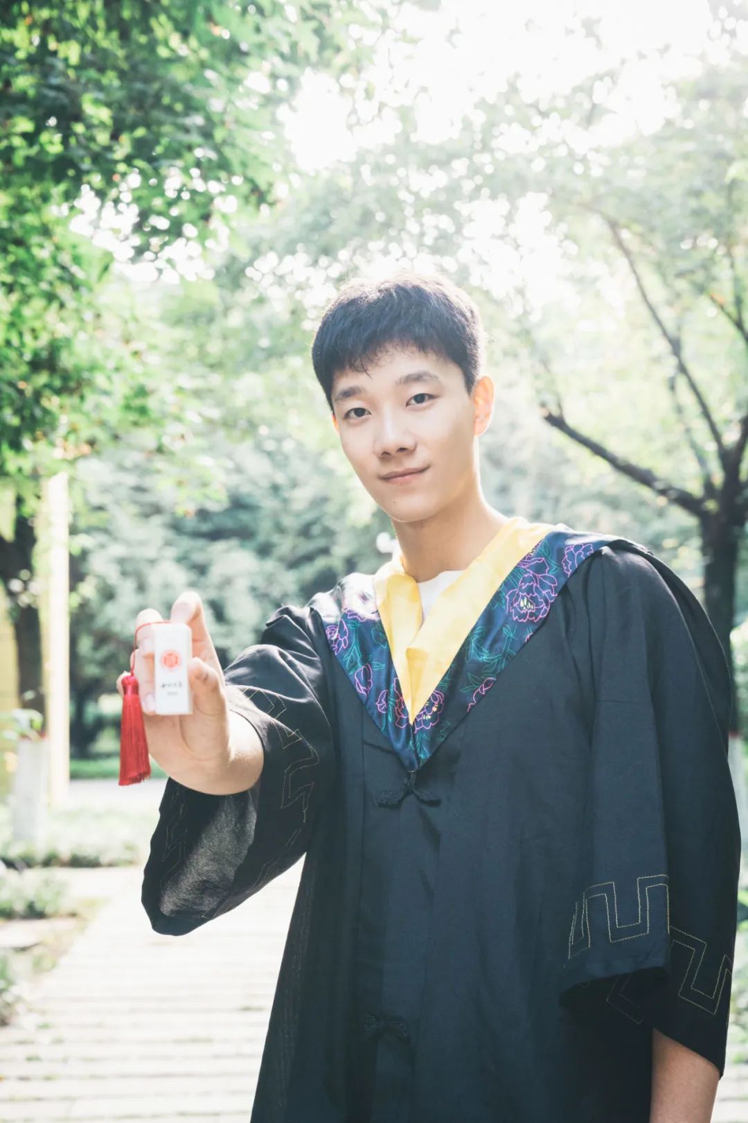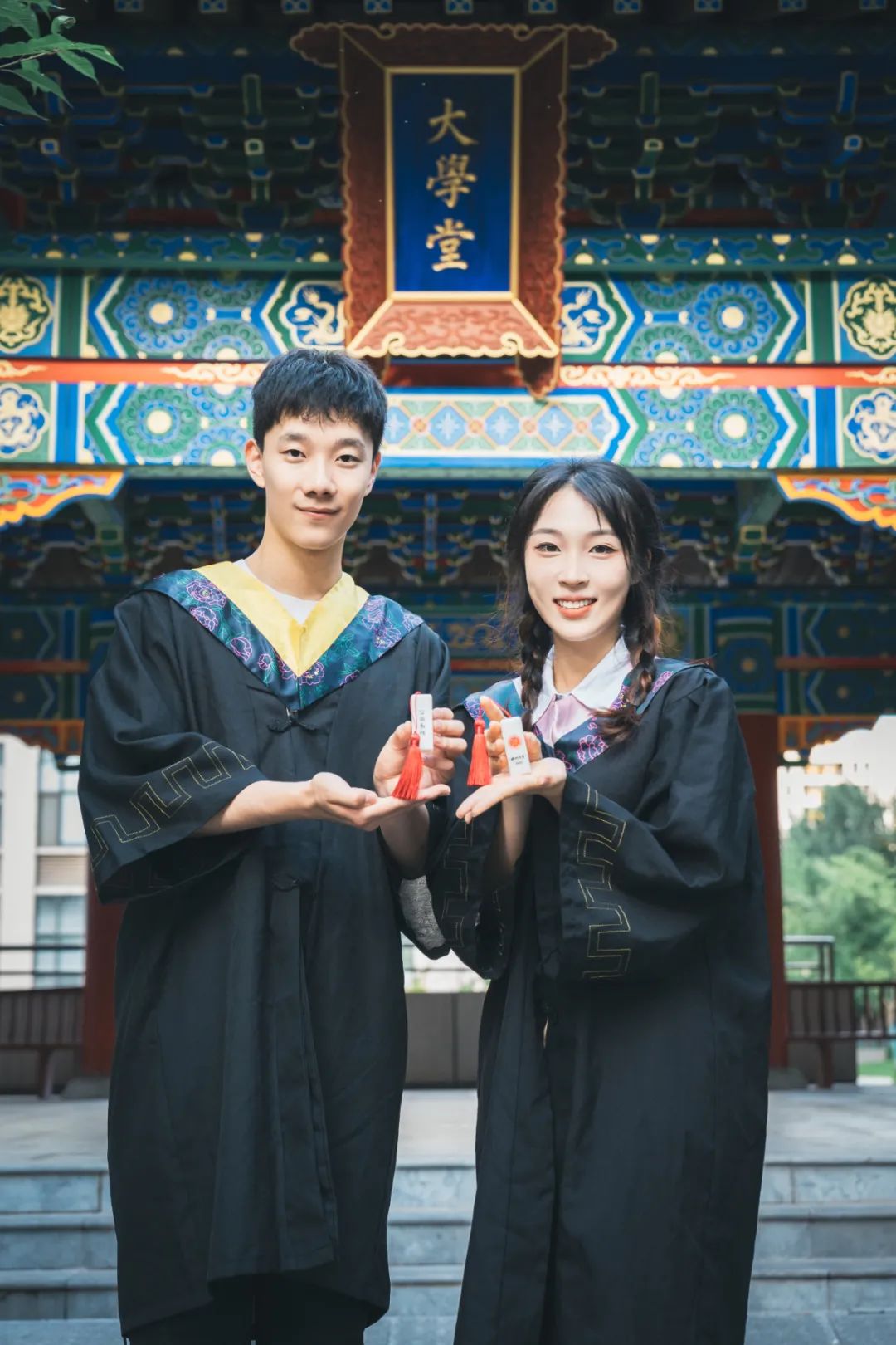 红色校徽和玉穗增添其上