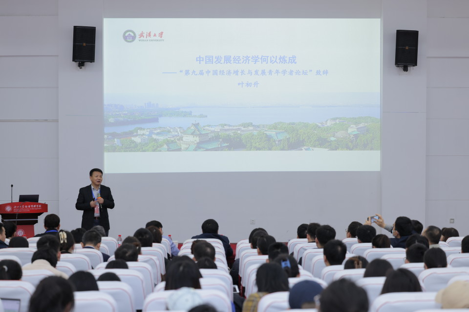论坛开幕式由经济管理学院李辉教授主持,马莉莉教授代表学院致辞,《经济评论》主编叶初升教授以“中国发展经济学何以炼成”为题发表精彩演讲。
