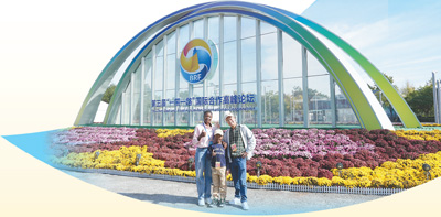 在参加第三届“一带一路”国际合作高峰论坛民心相通专题论坛当天,露丝一家三口合影留念。