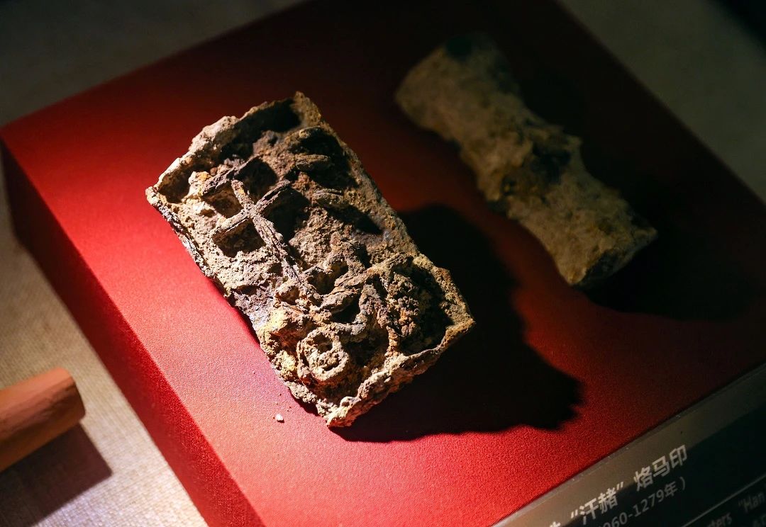 经千年风霜,铁质烙马印品相已显残缺,但宋体楷书“汗赭”二字字迹清晰可辨,成为汗血宝马烙马印的佐证。这方铁印长11.4cm、宽6.7cm、高3.2cm,长方形印面铸有“汗赭”。乐鱼网页版页面登录博物馆文物专家贾麦明告诉记者,“汗”为出汗之意,“赭”为红色之意,正楷宋体字样古朴流畅。“我20多年前一看到这方印,就断定这是专为汗血马臀部烙印的铁印。”