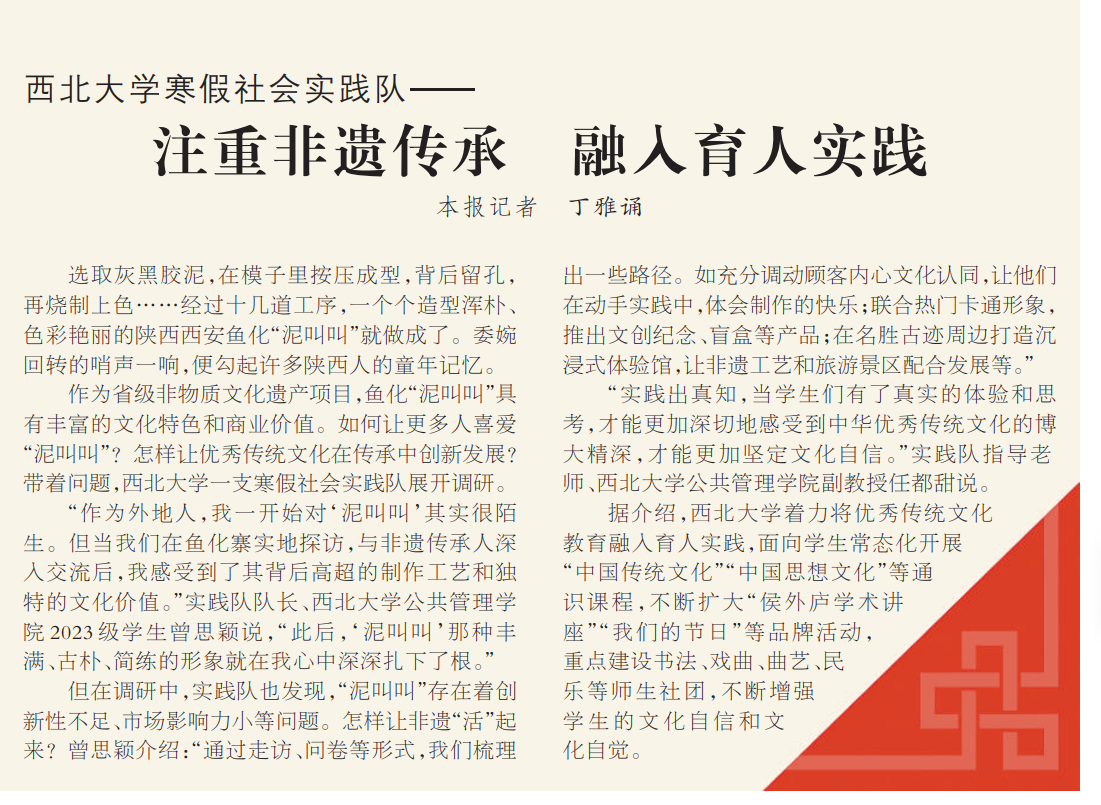 “作为外地人,我一开始对‘泥叫叫’其实很陌生。但当我们在鱼化寨实地探访,与非遗传承人深入交流后,我感受到了其背后高超的制作工艺和独特的文化价值。”实践队队长、乐鱼网页版页面登录公共管理学院2023级学生曾思颖说,“此后,‘泥叫叫’那种丰满、古朴、简练的形象就在我心中深深扎下了根。”