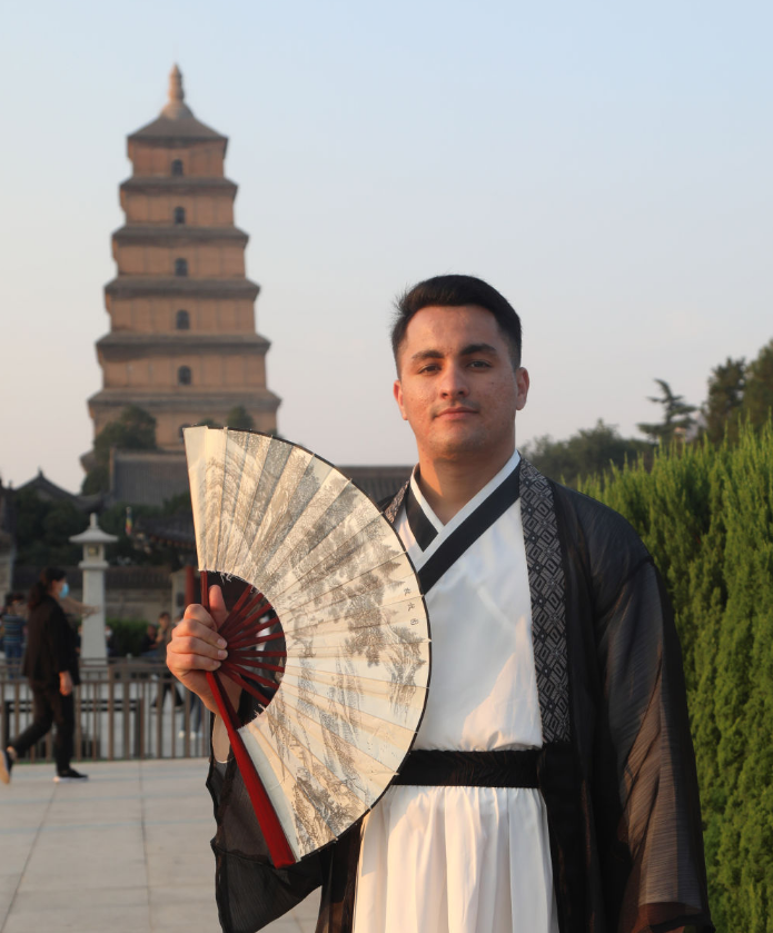 来自土库曼斯坦的刘木在中国古都西安游玩(资料照片)。新华社发
