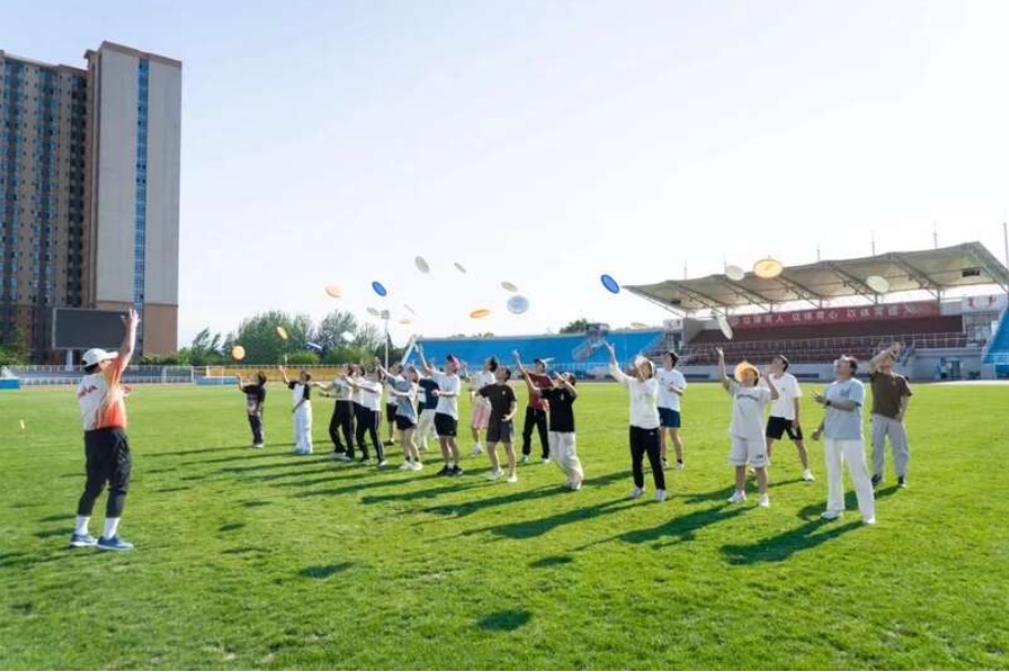 弓步、转身、出手,飞盘掷出的瞬间势如破竹;预判、起跳、精准接盘,矫健的身影在草地上疾驰……他们奔跑、跳跃、追逐,笑容和汗水在课堂上交织,每一次出手都包含着对队友的满分信任,每一次接盘都是对速度和反应能力的极限挑战。