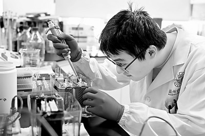 温州肯恩大学理工学院学生在生物科研实验室做实验。新华社发