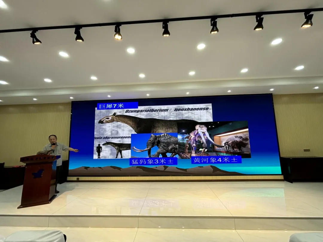 讲座中,李永项还向学生们展示了巨犀的复原图和骨架模型,详细阐述了巨犀的生理特征,使学生们能够直观地理解这种史前巨兽的体型与结构。