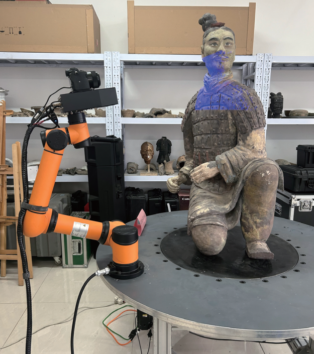 而2012年投入使用的第四代三维扫描仪(XD-scanner4)是无人机大场景三维成像扫描系统,它的问世极大方便了不可移动文物数字化建模,使遗址大场景建模更加真实直观,已相继完成了秦始皇帝陵、布达拉宫、塔尔寺等遗址的建模作业。第五代三维扫描仪(XD-scanner5)则是于2022年研制出的机器人智能文物扫描设备,通过结合人工智能和大数据技术,可在文物的个体识别、属性提取上取得新突破,已被应用于兵马俑、石窟寺等文物的三维扫描。