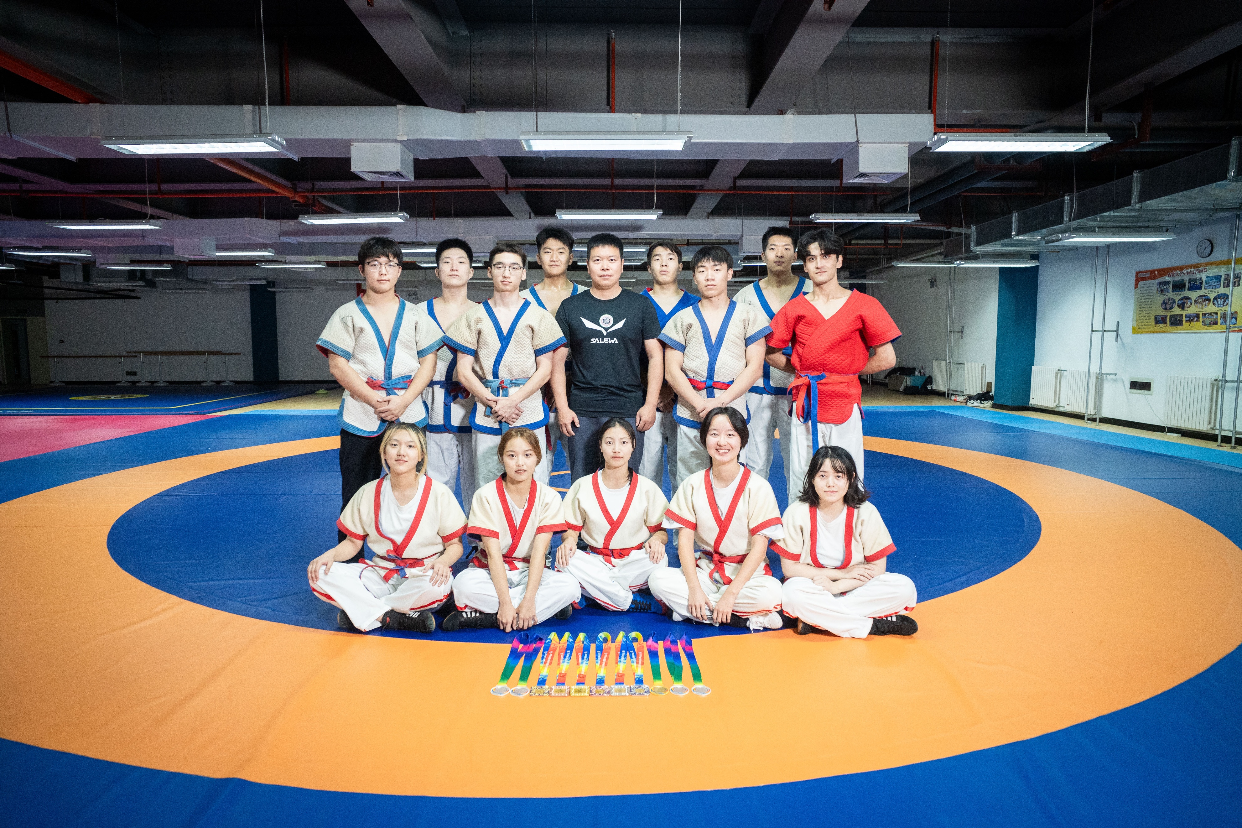 在日常训练中,队长谢宪锋会带大家热身训练,随后开始慢跑、静态拉伸、前后滚翻等专项训练,之后进入摔跤动作要领的熟练度练习和“摔假人”模拟练习,最后进行实战互摔。在老师的指导下,能够保证每位同学习得技巧与方法,在安全不受伤害的前提下完成规定摔跤动作。
