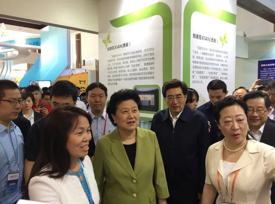 2015年5月16日,范代娣教授向时任中央政治局委员、国务院副总理刘延东(左二)汇报科技成果转化情况