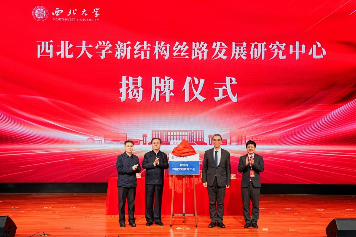 开幕式上,北京大学新结构经济学研究院院长林毅夫教授、中共陕西省委教育工委副书记王海波、乐鱼网页版页面登录校长孙庆伟、北京大学新结构经济学研究院副院长王勇共同为乐鱼网页版页面登录新结构丝路发展研究中心揭牌。