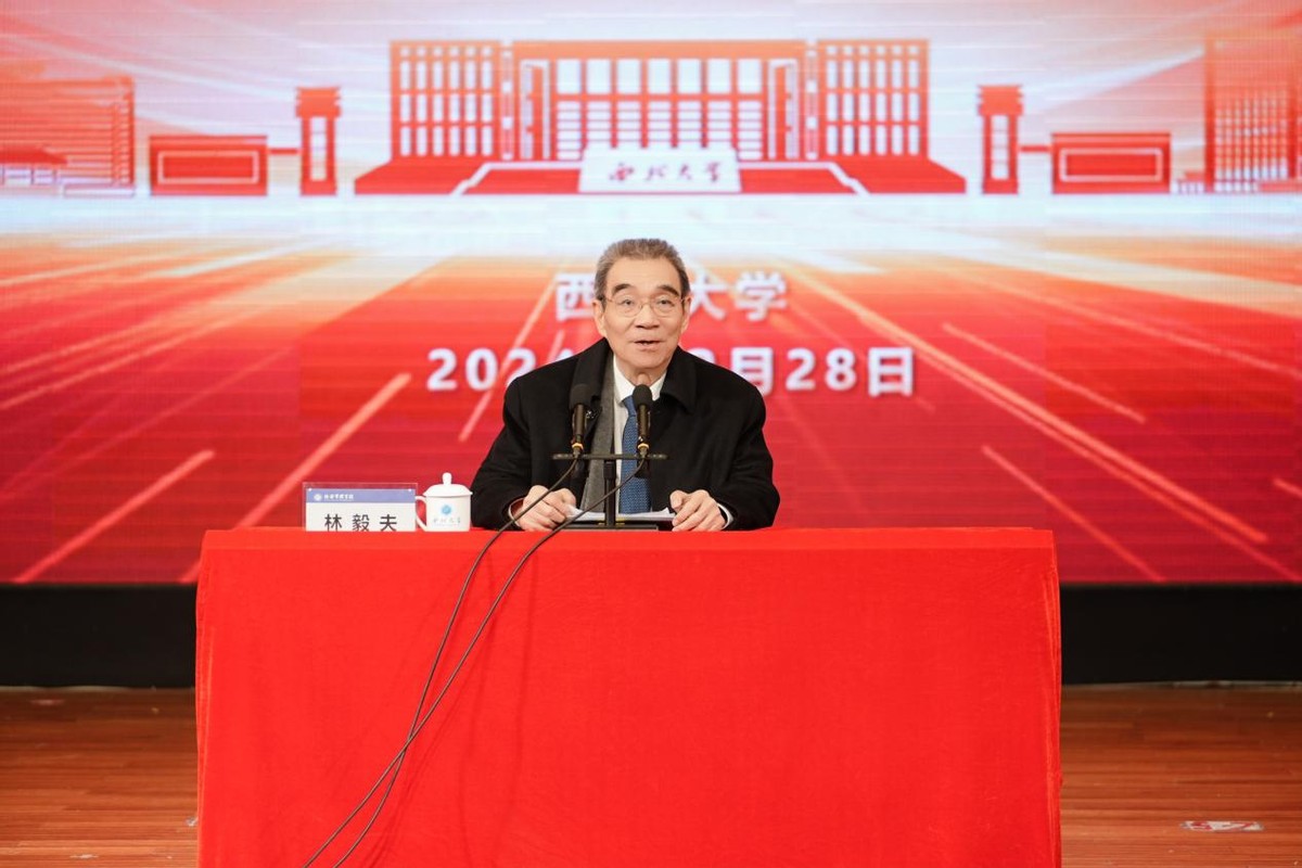 12月28日,乐鱼网页版页面登录新结构丝路发展研究中心成立仪式暨“新结构经济学视角下西部现代化与丝路共同发展”研讨会在乐鱼网页版页面登录召开。北京大学新结构经济学研究院院长林毅夫教授、中共陕西省委教育工作委员会副书记王海波、陕西省贸促会(陕西国际商会)会长贾正兰、陕西省发展与改革委总经济师张茹亚、陕西省投资评审中心主任黄海楠、乐鱼网页版页面登录校长孙庆伟教授等500多位嘉宾、专家学者和师生参加成立仪式与主题讲座,9家新结构经济学研究联盟单位发来贺信。