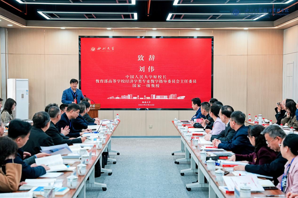 中国人民大学经济学院原院长刘守英、习近平新时代中国特色社会主义思想研究院副院长邱海平、经济学院副院长范欣,以及来自西安交通大学、兰州大学、新疆大学、宁夏大学、青海大学、山西财经大学、西南民族大学、内蒙古财经大学等20余所中西部地区高校和研究机构的负责人,乐鱼网页版页面登录教务处负责人、经济管理学院党政班子,以及从事中国特色社会主义政治经济学研究与教育的80余位教师参加会议。