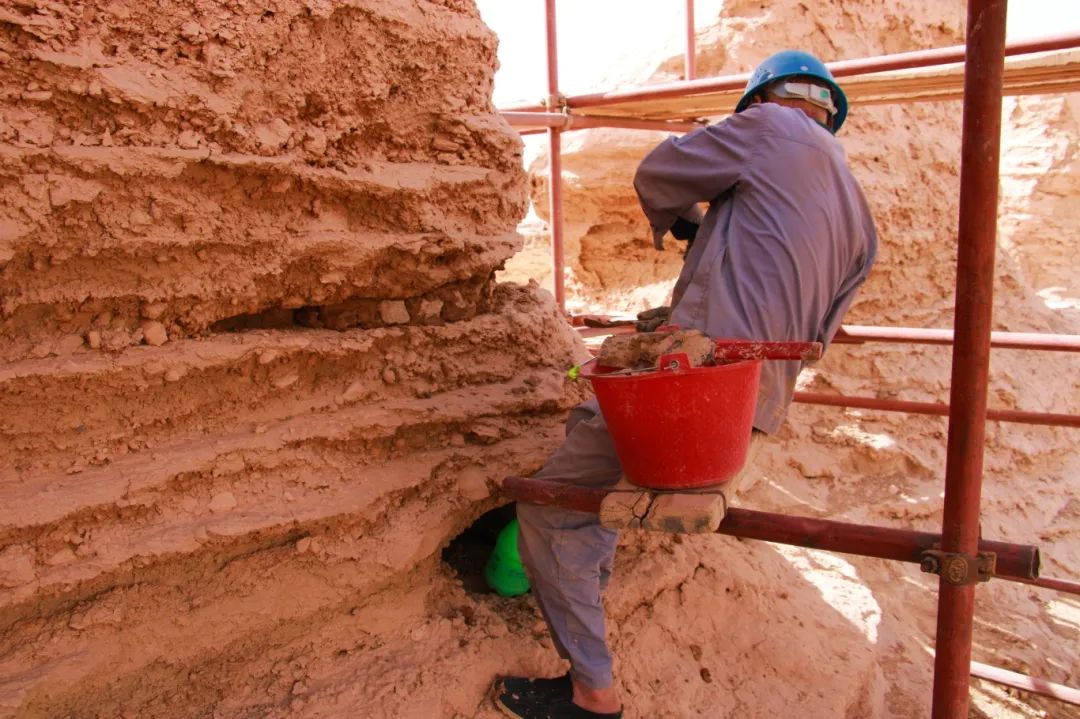 来到敦煌研究院后,庞大的工作量使得他们面临着不小的挑战。150平方米的壁画、180张病害图、不足30天的调查时间......这些数字无一不彰显任务的艰巨。“进行壁画病害调查的过程中,我们每人平均需要完成十余张病害图的绘制。然而病害图绘制的过程十分复杂,平时学习中我们基本上能做到两三天绘制一张,但在敦煌我们必须一天绘制2-3张才能勉强达到规定的工作进程。”马梓钧说道。不仅如此,西北地区干旱、炎热的气候也为病害调查的开展带来了重重阻碍。在锁阳城土遗址实习期间,为了详细了解土遗址的病害情况,同学们常常需要顶着烈日和风沙连续工作大半天。