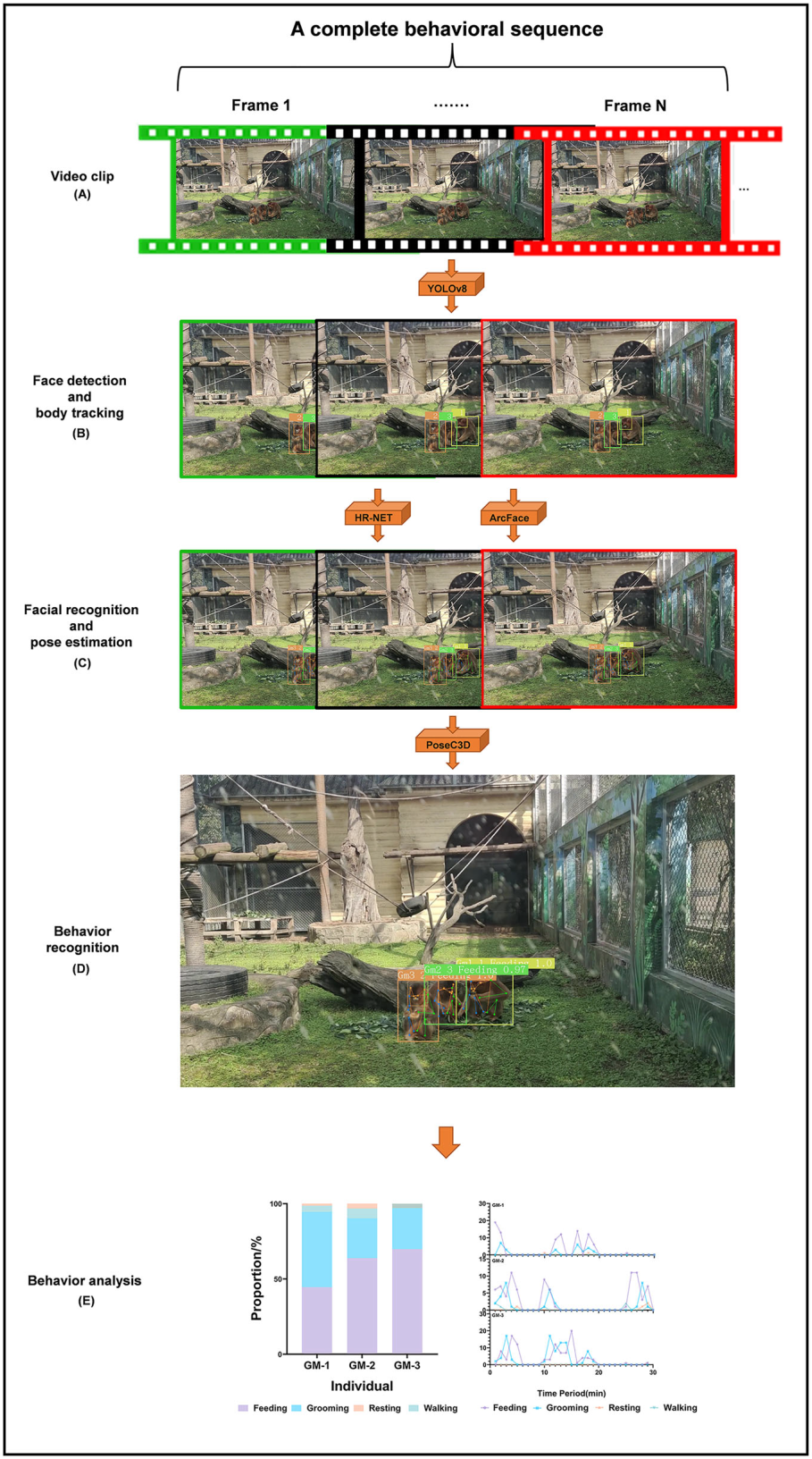 行为AI识别框架及处理流程示意图