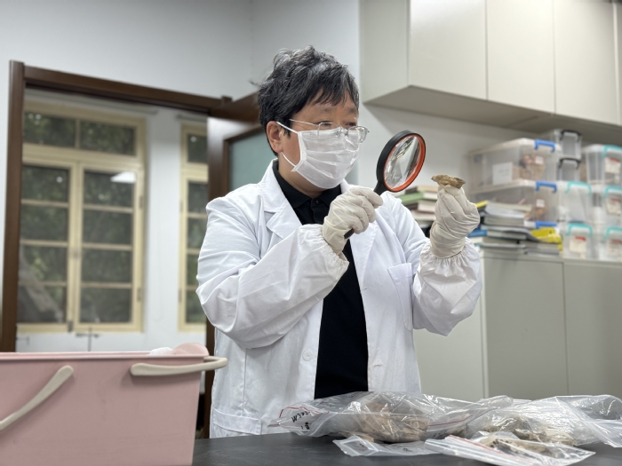 乐鱼网页版页面登录文化遗产学院教授陈靓正在观察骨骼情况。